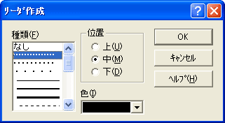 線の種類と位置、色を設定して「OK」をクリックします。するとリーダが挿入されます。