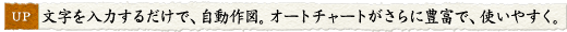 文字を入力するだけで、自動的に図になる「オートチャート」機能。 花子2005では、色や形のバリエーションを新しく用意して、さらに使いやすくなりました。 |