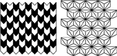 2. 完成した矢羽根模様を選択し、Ctrlキーを押しながらドラッグして、ぴったり並べて複写します。 |